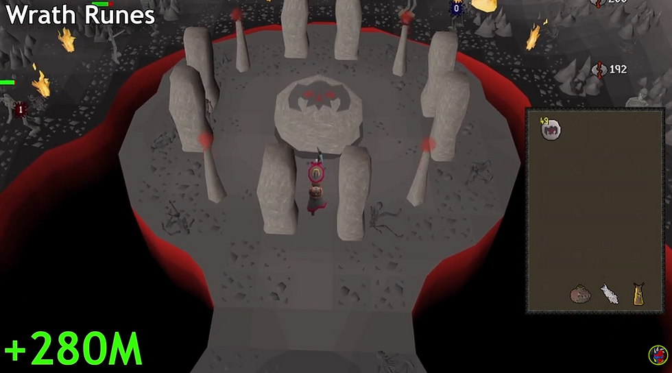 At 95, you can runecraft wrath runes, and going from 95 to 99 solely doing wraths, you'll make up to 280 mil, with XP rates of 42k per hour.